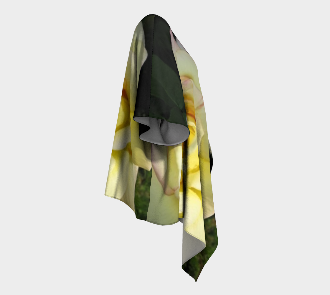 Wrap yourself in an elegant blooming yellow rose. Perfect for everyday wear, or lounging at home.